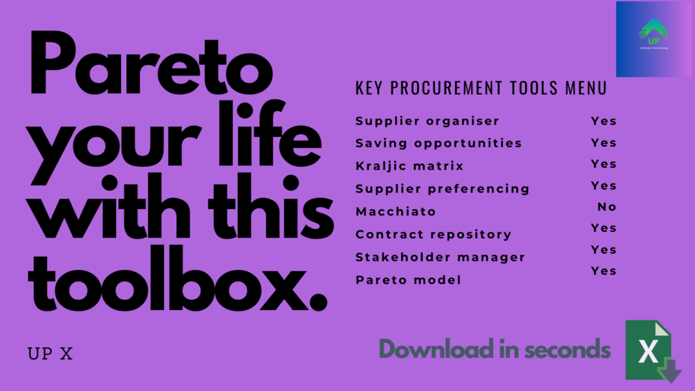 This toolbox contains advanced excel spreadsheets, giving the UP Procurement professional tools to control and manage their supply relationships and risk.